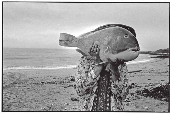 几条小舢板缓缓靠岸,妇人们冲上前去协助舢板抢滩,无奈渔获多是不肥不美、装不满箩筐的小鱼。其中唯一的珍奇便是这尾色彩艳丽、体形硕大的鹦鹉鱼。见一位妇人像抱婴儿般地把它兜在怀里,我赶紧举起相机,谁知妇人的动作比我更快,马上就把鱼捧上来挡住了脸:“拍鱼就好了,不要拍我!”