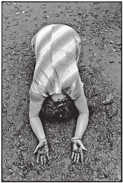 最佳的取景位置就是在她的正前方,时机就在她顶礼与起身之间的那一秒钟内。若是被她发现我挡在她与天后之间,麻烦就大了!我屏住气,在她正要趴下去的那瞬间,由她的左侧切入正前方,按下快门,从右侧退出;整个动作也不过就像是一阵风,丝毫没让她觉察。