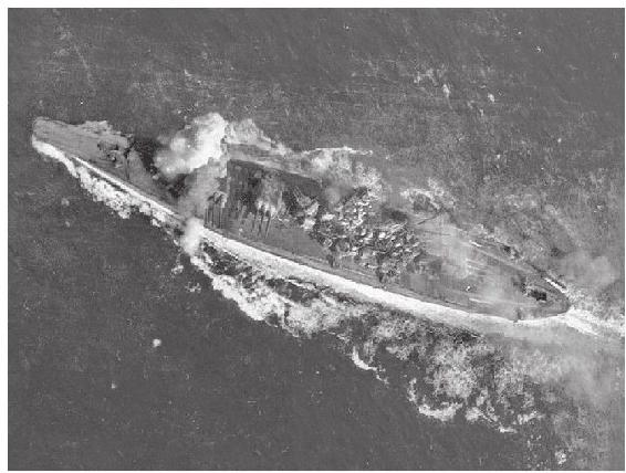 “武藏”号已葬身海底,莫非这次要轮到“大和”号了?为使这艘超级战列舰保持平衡,舰员拼命注水,“大和”号的后部被注水2000吨,加上涌入的海水,“大和”号总共容纳了5000吨海水,相当于一艘巡洋舰的重量。