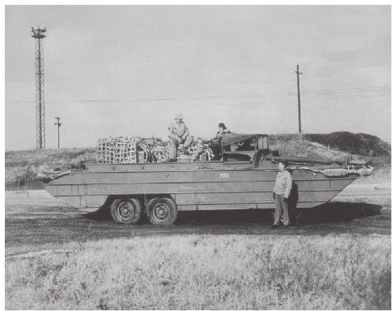 “鸭子”。正式名称为DUKW,一种六轮两栖卡车,同时也是第一种可在驾驶室内改变轮胎气压的车辆,它的轮胎可完全充气以应付硬地路面,亦可降低轮胎气压以适应沙滩那样的软路面