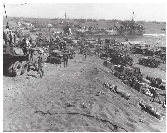 这种两栖登陆工具早已研制出来,但直到此次硫黄岛之战才开始大量使用。LSM停靠滩头后,立即放下跳板,坦克、火炮、推土机、开山机等重装备源源不断地被送上岸。