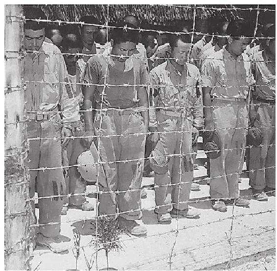 日俘在收听天皇发布的“终战”诏书。由于录音质量较差,再加上诏书使用了汉文训读体(阅读难度犹如中国古代的文言文),使得大部分日本民众很难直接理解诏书的含义,但他们知道天皇已经宣布日本投降了