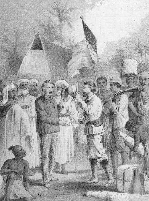 1870年10月,这个美国人一句话也没有说,毫不犹豫地接受了使命。他犹如英雄一般面带微笑踏上了从孟买开往桑给巴尔的轮船。到达非洲后,他几乎完全按照斯皮克和伯顿曾经走过的路线,一路向非洲内陆寻来。他一路遭遇了无数危难,几经生死的考验,最后终于到达了乌季季。
