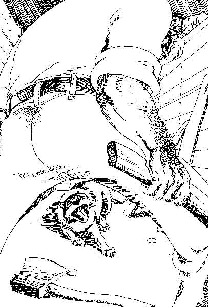 这节快运包裹车厢在汽笛声声的火车屁股后面被整整拖了两天两夜;而巴克也就持续两天两夜没吃没喝。它气愤万分,当快运车厢里的速递员开始走近它时,它都报之以嗥叫,他们以取笑捉弄来对它进行报复。它气得发抖,口喷唾沫,扑向板条,而他们嘲笑它,奚落它。只见他们也嗥嗥乱叫,像恶狗般狂吠,像猫喵呜地叫,扑腾着双臂,还像公鸡般地啼鸣。它知道,这一切全都非常愚蠢;但是,也就更加有损它的尊严,于是它的怒火便越烧越高。它并不太在意饥饿,但是,缺水使它遭受极大的痛苦,并使它的怒火增加到了怒不可遏的程度。因此,它高度紧张,极度敏感,这种虐待使得它怒火满腔,疼痛的咽喉和肿胀的舌头更增添了怒火。