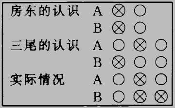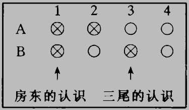 “的确,门打不开。但是,从理论上说,当房东开门的时候,AB只能处于都没有上锁的状态。那么,为什么与实际情况不符呢?这一点还没有弄明白。但是,理论上AB锁只能是没有上锁。这可以与房东开锁的顺序进行比较。房东实际上把没有上锁的AB全部锁上,然后认为已经把3变换成2、即A上锁、B没有上锁的状态,只要打开A就行了,但还是打不开门。其实,门不可能打开,因为B还上着锁。”