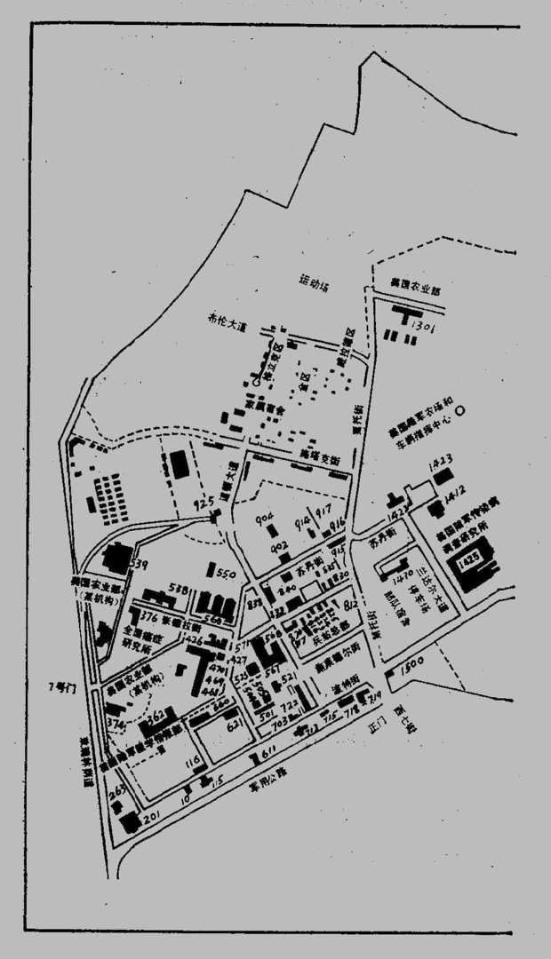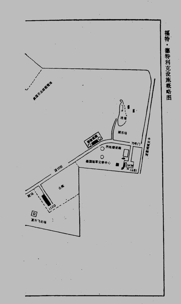 轿车向左一个大转弯,驶上了军用道路。这条路笔直,路旁栽着白桦,齐刷刷地排成一列伸向远方。不一会,看到左侧有一块标着“USAMRIID”的大牌子。后来我们打听到这是“美国陆军传染病调查研究所”的简称。