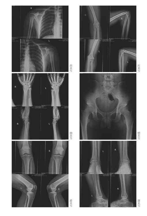 被鉴定人去拍摄全身六大关节的X片(关节就是长骨一端对接的地方)。所谓的六大关节就是肩关节(观察肱骨上端和肩胛骨)、肘关节(观察肱骨下端以及尺骨、桡骨上端)、腕关节(观察尺骨、桡骨下端以及诸手骨、掌骨和指骨)、髋关节(观察骨盆以及股骨上端)、膝关节(观察股骨下端和胫骨、腓骨上端)和踝关节(观察胫骨、腓骨下端以及诸足部骨骼)。