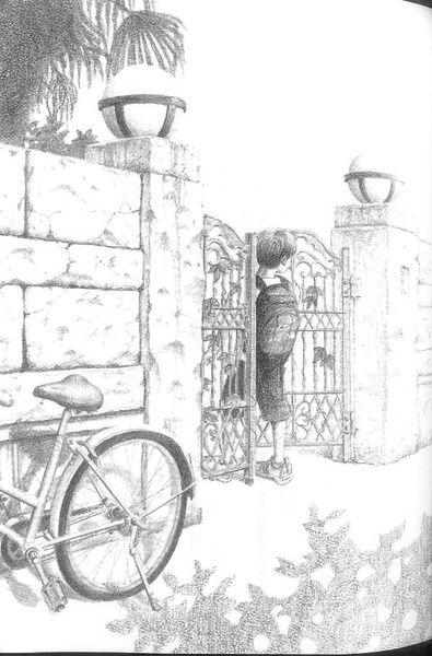 被藤蔓缠绕的青铜格子的铁门门扉,此时被稍微地打开了。之前每次来时,铁门总是关得紧紧的,而且还上了有铁链的锁——