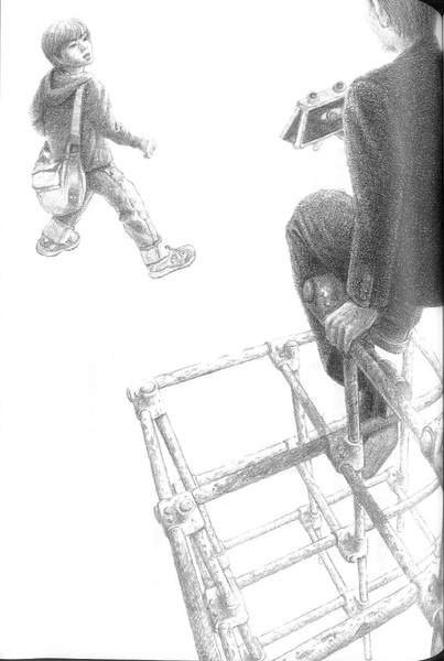 他瞄了自己的手表一眼后低声说道,接着跳下攀爬架。他的身材高瘦,从背后看去根本跟黑影没两样。在颜色已变黑暗的夕阳照耀之下,影子转身对我说道: