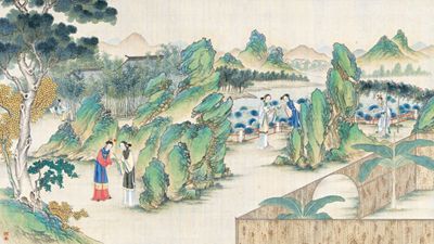 《红楼梦》插图(湘云翠缕论阴阳)清 孙温绘