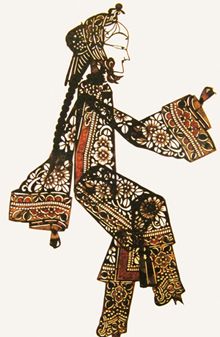 皮影人物的制作非常考究。先将准备好的皮革,做成人的头、四肢、躯干等模样,再用绳索将其串起,用连杠连成一体,成为颜色鲜艳的人物形象。在演出时,用灯光照射在皮革做成的人物上,形成活灵活现的剪影,通过他们的动作表演故事,若真若幻,赏心悦目。有一出传统山西皮影戏《含嫣梳妆》,其中有一段描绘一个少女坐在镜子前面化妆的情景。一边是镜子内,一边是镜子外,皮影艺人两面照应,动作要求一致,有相当的难度。成功的表演,能使观众得到很大的满足。