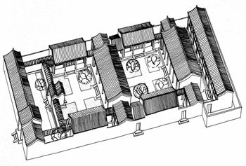四合院作为北京民居的主要形式,自元代定都北京开始,就已经出现。在元大都的城市规划中,民居一般都要求采用四合院形式。将一个个四合院连在一起的是胡同和街坊,由此形成互相关联的世界。四合院不是与世隔绝的小空间,而是城市景观的有机组成部分。