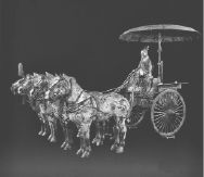 至于秦始皇的陵墓,也就是兵马俑的拱卫之所,还没有进行挖掘。据说政府尚不具备保护陵墓内的文物不受损害的能力。其实,光是兵马俑就够他们忙活的了,我们游览时挖掘工作仍在进行中。兵马俑虽然很壮观,看了半小时也足够了。我们取回挎包,坐车回到临潼,再倒车回到西安。我们临上车时,发现兵马俑展厅的后面还有一幢房子,墙上挂着个大牌子:相同的工艺,相同的原料,相同的质量,相同的价格制作兵马俑。两千年前的原始砖窑以同样陶土和技术为您复制具有同样的面部表情的兵马俑。这段话又一次提醒我和芬恩,我们已经来到了丝绸之路,这里所有的东西都可以出售,甚至包括世界奇观。