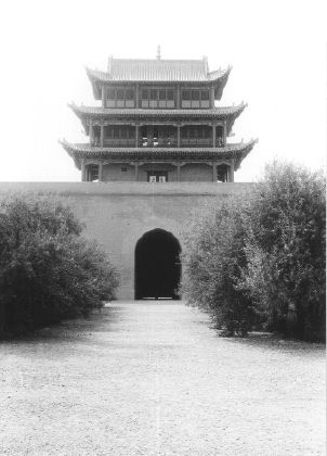 “关”在汉语中意为“关隘,”建这个关城就是为了守卫嘉峪关口。嘉峪关称得上是整个丝路上最雄伟的建筑。它的外墙高达11米,周长750米,内墙稍矮一些。19世纪之交,两位西方旅游者在参观过嘉峪关之后,写道:“景色凄凉,无以言表,如果人类的悲伤曾经在哪个地方的空气中留下过痕迹,那一定是嘉峪关。几百年来,经过关口的是无数绝望的人流——失宠的官员、获刑的罪囚、无家可归的浪子、恐惧的逃犯。这些人的足迹汇聚在一个阴沉的关口,经过此处后就永别了出生之地。城墙上写满了由一颗颗破碎的心灵泣血而作的诗歌。”
