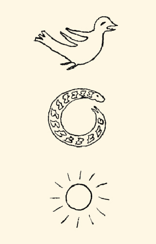 在此之前,那个漫长的岁月有着神话传说中的“三个代表”——夏娃代表原始群,意义是“从猿到人”,形象表现为裸猿;女娲代表母系氏族,意义是“从自然到文化”,形象表现为鱼、蛙、月亮;伏羲代表父系氏族,意义是“从母爱到男权”,形象表现为鸟、蛇、太阳。