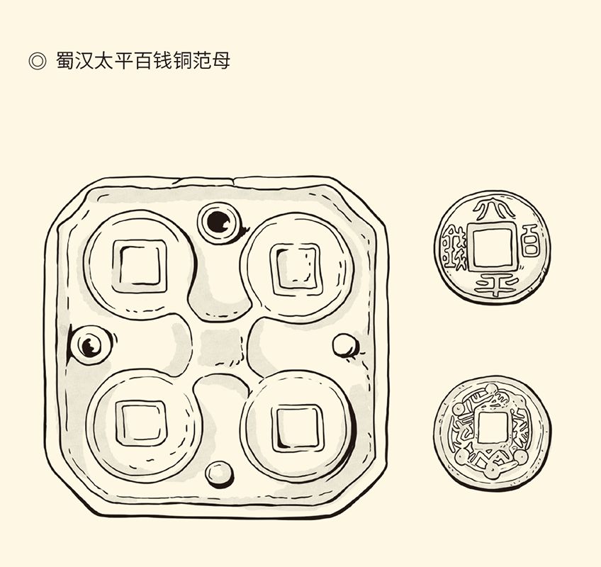 三国鼎立,币制也各成体系。三国中最早开始铸钱的是蜀汉政权。刘备攻取成都后,府库空竭、物价飞涨,刘巴献策铸钱平抑物价,并令吏为官市,以解军需市用之不足。成都出土的“太平百钱”铜范母,为蜀汉铸币提供了较可靠依据。