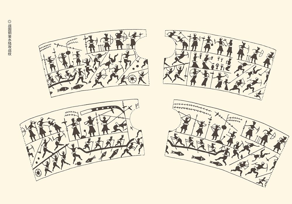河南汲县出土,内容为水陆攻战场景,两军对阵、徒卒、仰攻、投石、水战等等,无不具备。