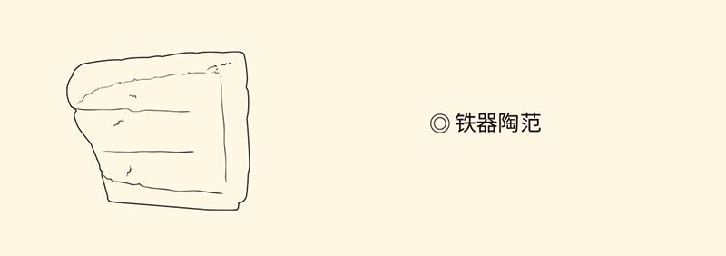 前119年,汉武帝采纳桑弘羊等人的建议,把盐铁收归国营。此陶范带有“山阳二”、“巨野二”标志,是西汉山阳郡官府经营第二号冶铸作坊的用具。山东滕县出土。