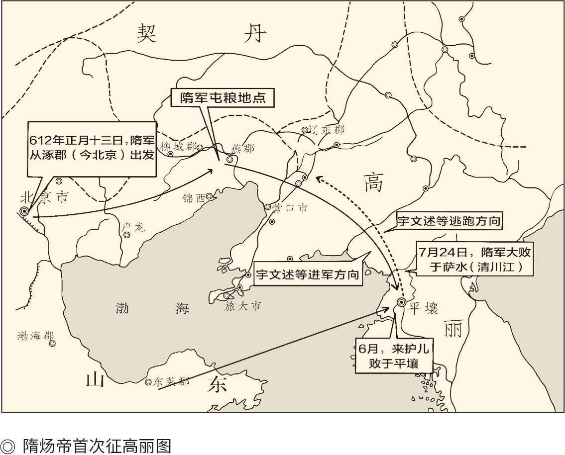 高句丽是大隋帝国的肉中刺。早在十年前,也就是开皇十八年(598)的六月,隋文帝就曾任命皇五子汉王杨琼为统帅,率领水陆两路三十万大军出征辽东,开启了隋唐两代多次讨伐高句丽的战端。结果,劳师远征的隋军得不偿失损失惨重,活着回来的人最多十之一二。