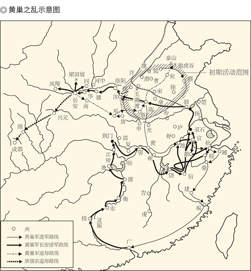 黄巢的名字许多人都耳熟能详,至少知道大唐其实是被他颠覆的。事实上,从揭竿而起到兵败自杀,黄巢战斗了整整十年,远远超过从安禄山到史朝义的总和。兵锋所至则几乎扫荡了大半个中国,破坏程度也远非安史之乱可比。