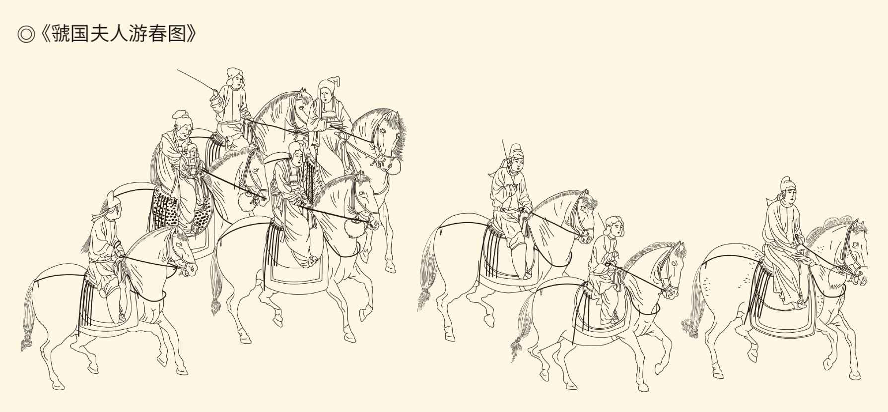 唐玄宗天宝年间,有位贵妇人身着男装骑在马上,带领一众人等前往曲池踏青。此行虽然在正史中并没有留下文字记载,却被诗人和画家记录在案。看来,这件事在长安恐怕也轰动一时,甚至成为街头巷尾茶楼酒肆的谈资。[1]