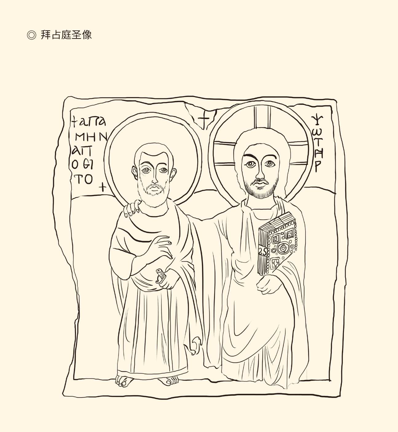 据创作于6世纪的耶稣与圣麦纳斯画像。原作为木版蛋彩画像,长宽均为57厘米,现藏于法国巴黎卢浮宫。
