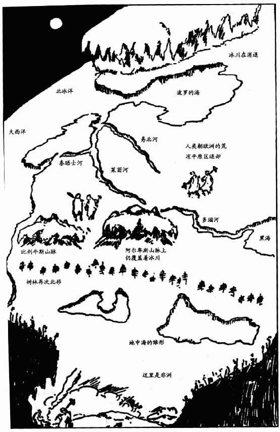 就这样,几千年过去了。只有那些脑子最聪明、最肯动手的家伙们活了下来。他们必须日夜不停地与寒冷、饥饿作斗争,他们必须发明出种种工具。他们学会了怎样磨制锋利的石斧,制造石锤;为了度过漫长的寒冬,他们必须储存大量的食物;他们还发现用黏土可以制成碗和罐子,阳光能够将它们晒干并使之变硬。就这样,时时威胁着要毁灭整个人类的冰河时期,变成了人类最伟大的导师。因为它能够迫使和诱导人类开动脑筋去思考自己所面临的一切问题。