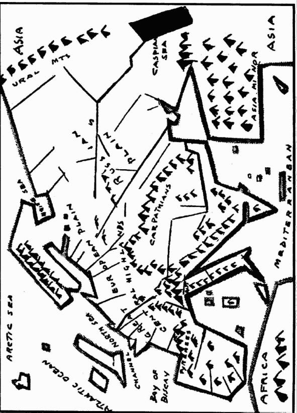 所有这一切总有一个原因。外表看来,这里似乎是一个政治原因,可是,实际上,这个原因很大一部分出于地理因素。俄国比任何一个国家更具有地理背景。这个国家难以决定自己到底属于欧洲还是属于亚洲。由于这种含混的态度,导致了文化矛盾冲突,而文化矛盾冲突又导致了这个国家的现状。关于这一切,我要用一张简单的地图来讲明白。