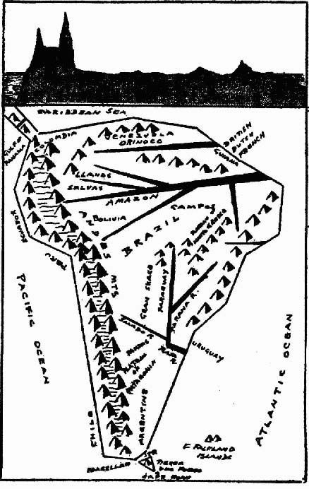 很久以来,南美洲是各种政治的舞台。巴西帝国虽然持续了将近一个世纪,但还算一个较新颖的事物。还有巴拉圭的耶稣会,它在研究乌托邦的学术著作中占有一席之位。南美至少产生了一个伟大的人,那就是玻利瓦尔。像我们的华盛顿一样,他解放的不仅仅是自己的国家,整个南美大陆的革命运动的成功都是与他的名字紧紧相连的。我从不怀疑,在乌拉圭和玻利维亚的历史上还有许多重要的人物,但是他们并不扬名世界。在深入了解他们以后,我肯定他们能够归入世界名人之列。因此,这本书只介绍高山、河流和国家就足够了。