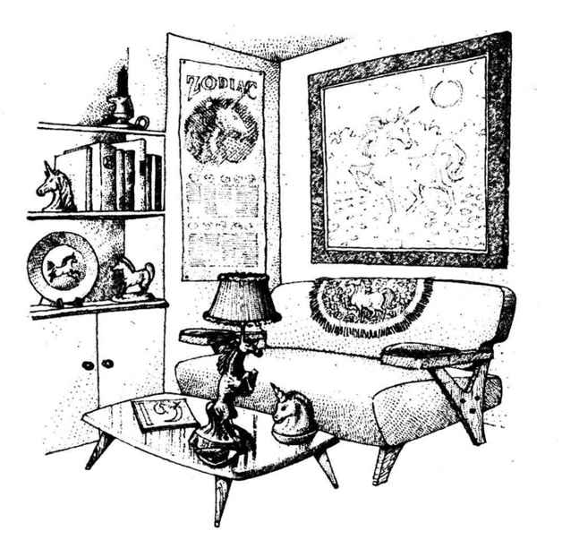 贫民阶层商品目录还有一个特点,就是总会有独角兽而不是其他动物,这种动物出现的频率极高。我们可以见到长毛绒独角兽、白锡独角兽、黄铜独角兽、旋转式陶瓷音乐独角兽——想象力所能及的每一种独角兽都有。一份目录宣布“时下独角兽正走红”,我花了六个月的时间尝试找出其中的确切原因,最终还是不得其解。原因也许很低调,但一定是高度挑剔的崇英势利心理的作用,将独角兽从英国皇家军队里引诱了出来,却把狮子㉓给忘了。其实狮子倒是更有等级的动物,你可能会有这样的疑惑。也许是托尔金㉔的流行(但不是在贫民阶层中,肯定吗?)刺激了人们对所有“神秘动物”的兴趣,又也许是独角兽所代表的异国情调(这动物据称是一种罕有动物,所以宝贵)刺激了贫民阶层的想象力。也许还有一点不容忽视,与龙不同,独角兽完完全全是一种温和慈祥的神秘动物,与那些被贫民阶层视为神圣的真实动物——鲸、海豚、熊猫、考拉熊——很相似。而在有知识的贫民阶层看来,独角兽可能与性有一种模糊的关联——隐约让人想到处女或生殖器崇拜,等等。不论独角兽在贫民阶层中风靡的原因是什么,其中的动机恰好例证了文学批评家们一度使用的诽谤之辞:伪指涉。这一现象似乎不详地指向某种比现象本身更具体的东西。我的面前是一幅自命不凡的贫民阶层绘画作品,乍看似乎大有深意:一只独角兽正完整地从一个蛋中破壳而出,背景是一道彩虹,和一片“黄道带”繁星闪烁的天空。而这一动物,他(她?)自己也浑身缀满星星。含意?恐怕毫无实际含意,但看起来似乎有一种贫民阶层的自满,这种自满满足了对奇特预示和暧昧的双重欲望。