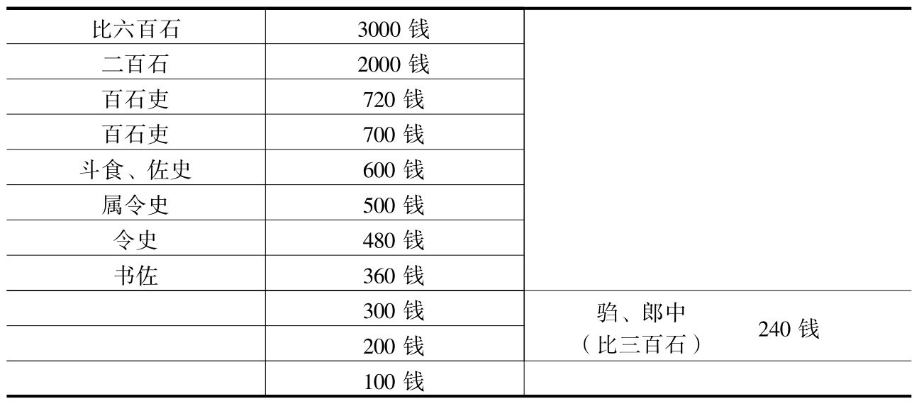 前面说过了,汉代郎官制度源于周代的士庶子制度。士庶子宿卫只吃稍食,秦汉郎官也用廪食供养着,再发一点零花钱,如此而已。《国语·越语上》记载勾践谋求复国时有这样一个措施:“令孤子、寡妇、疾疹、贫病者,纳宦其子。”注云:“宦,仕也,仕其子而教,以廪食之也。”这是用士庶子的待遇来优待孤寡贫病者的子弟,士庶子就是用廪食来养活的。附带说,《礼记·月令》有言:“季秋之月……收禄秩之不当,供养之不宜者。”对后一句话,古注往往不得其正(47);而我认为,这正反映了拿禄秩的是一批人,靠廪食供养的又是一批人。总之,“比吏食俸”是较晚才产生的。