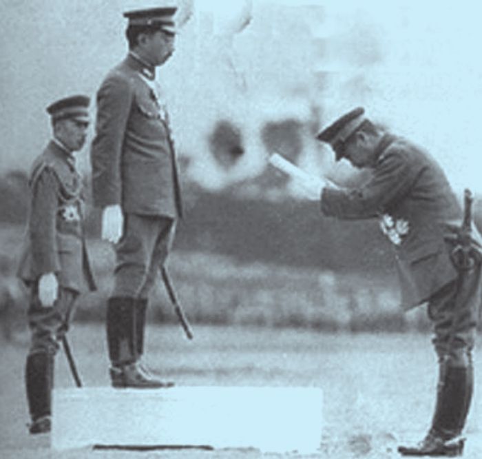 1940年10月,日本陆军大臣东条英机正在向天皇行鞠躬礼