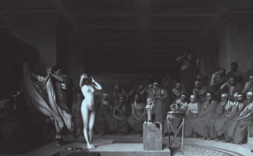 19世纪法国画家热罗姆以此为题材,创作了一幅油画《法庭上的芙丽涅》