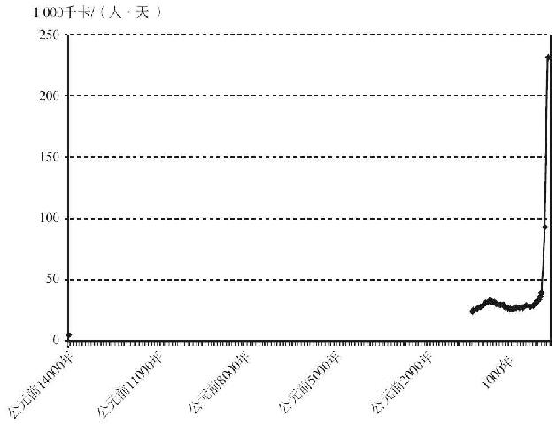 图3.10 公元前14000~公元2000年每千年西方能量获取情况