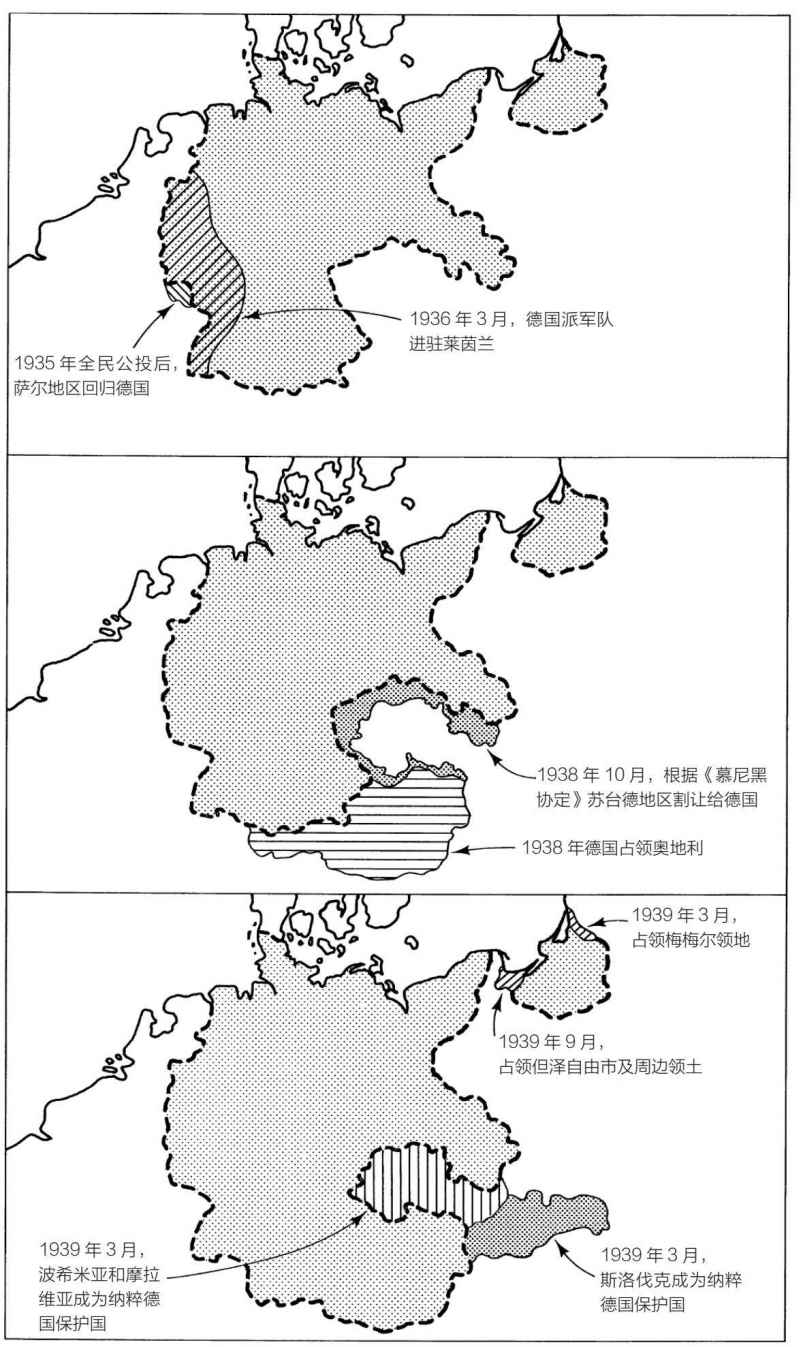 地图6.2 1935—1939年纳粹德国吞并的领土