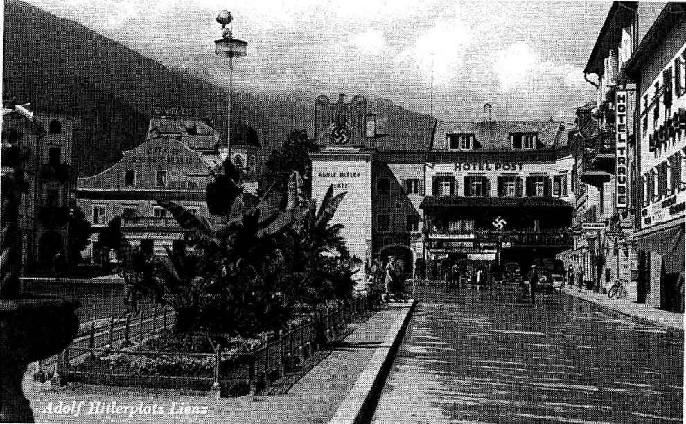 图32 奥地利城市利恩茨(Lienz)将一个大广场的名字改为“阿道夫·希特勒广场” (正如奥地利和德国的其他许多地方),利恩茨当时处于大日耳曼帝国境内。出处:作者收藏的当时的明信片。