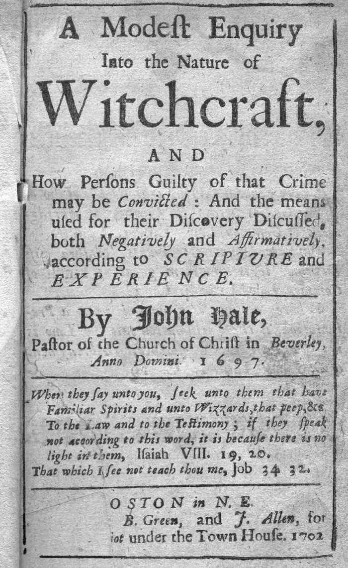 图14 约翰·黑尔《巫术性质浅谈》(波士顿:格林&艾伦,1702年)。