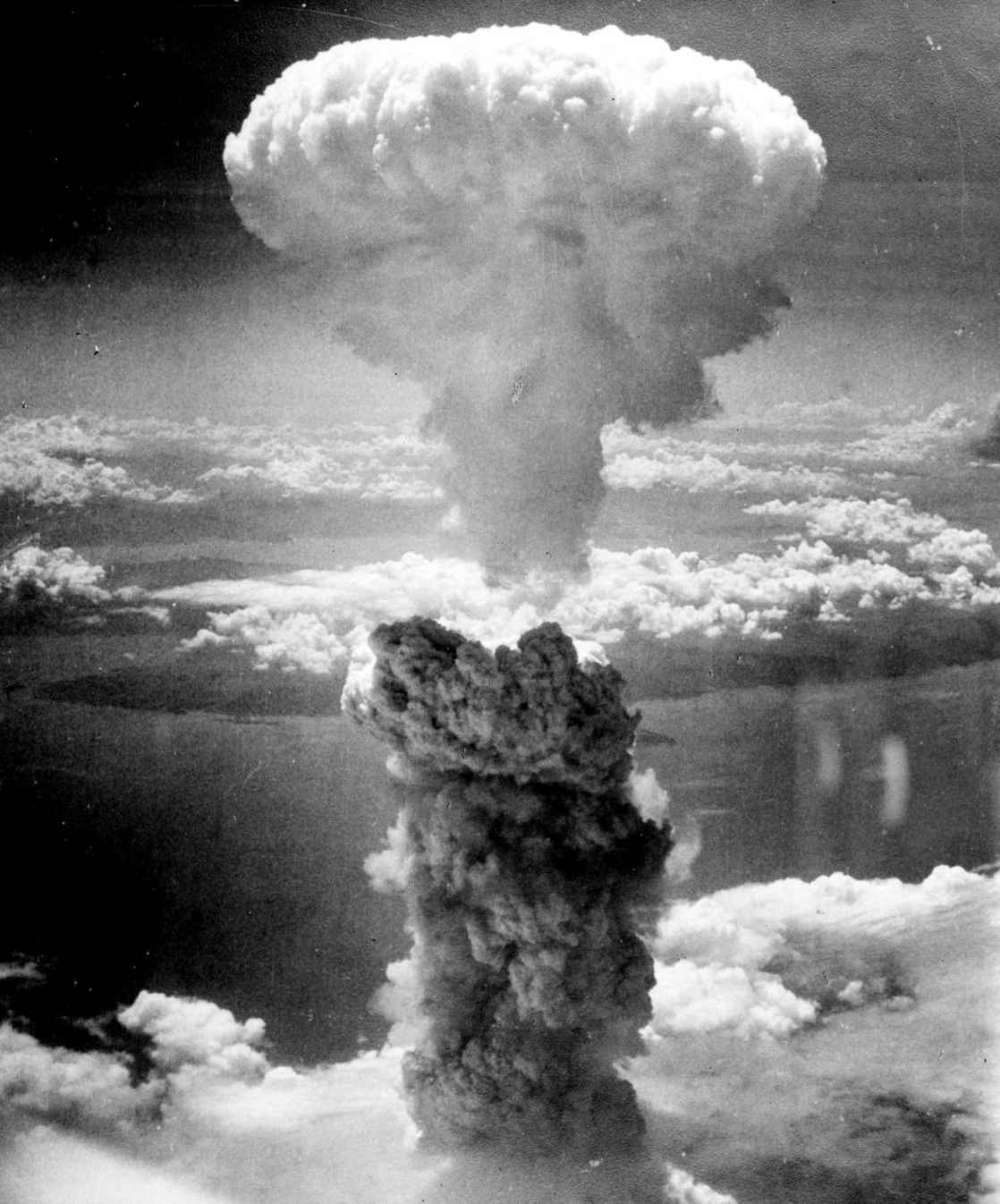 图60 照片展现了1945年8月9日长崎原子弹爆炸的景象。1945年之后,核试验也并未停止,最著名的核试验发生在1946—1958年的马绍尔群岛比基尼环礁。二战之后几十年间,核威胁给这个世界造成的阴影如何评价也不过分;直到21世纪“反恐战争”的背景下,核威胁才成为了一种低层次的威胁。在当时的文艺界,内维尔·舒特针对这种威胁创作了末日小说《海滩上》(1957年),这部小说又在1959年被改编为电影,由弗莱德·阿斯泰尔和阿娃·加德纳主演。当然,最著名的还要算斯坦利在1964年导演的讽刺电影《奇爱博士》。这一主题的文学作品可以一直追溯到19世纪末放射线被发现之时,罗伯特·克罗米的小说《世界末日》(1895年)以及此后许多的小说和电影。在这些作品中,核毁灭要么本身就是一种威胁,要么就是在隐喻现代世界中的焦虑感。不过,在20世纪五六十年代,核恐惧却不是什么隐喻,借用T.S.艾略特的诗句来讲,人们切实担心这个世界结束的方式并非郁郁而终,而是顷刻间轰然落幕。