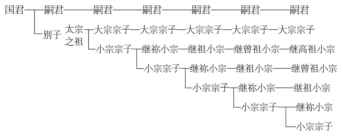 社会的组织,本是起于女系的。所以在文字上,“女”“生”两字,合成一个“姓”字。后来女权渐次坠落,男权日益伸张。权力财产,都以男子为主体,有表明其系统的必要。注78于是乎姓之外又有所谓氏。所以姓是起于女系,氏是起于男系的。注79再后来,婚姻的关系,亦论男系而不论女系,于是姓亦改而从男。一族的始祖的姓,即为其子孙的姓,百世而不改。如后稷姓姬,凡后稷的子孙都姓姬之类。是之谓正姓。氏则可随时改变。如鲁桓公系鲁国之君,即以鲁为氏,而其三个儿子,则为孟孙氏、叔孙氏、季孙氏之类。是之谓庶姓。注80正姓所以表示系统,庶姓则表示这系统内的分支。宗法与封建,是相辅而行的。凡受封的人,除其嫡长子世袭其位外,其次子以下,都别为大宗,大宗的嫡长子,为大宗宗子。其次子以下,则别为小宗。小宗宗子,直接受大宗宗子的统辖。小宗宗人,则直接受小宗宗子的统辖,间接受大宗宗子的统辖。凡受统辖的人,同时亦得蒙其收恤。小宗宗人,受小宗宗子的统辖和收恤,都以五世为限。大宗宗子则不然。凡同出一祖之后,无不当受其统辖,可蒙其收恤。所以有一大宗宗子,即同出一祖的人,都能团结而不涣散。故其组织极为坚强而悠久。注81此制为什么必与封建并行呢?因为必如此,然后大宗宗子,都是有土之君,才有力量以收恤其族人;而一族中人,都与宗子共生息于此封土之上,自必同心翼卫其宗子。而各受封之人之间,亦借此以保存其联络。因为受封的人,在其所封之地固为大宗,若回到其本国,则仍为小宗。如季氏,在其封地为大宗,对于鲁国的君,则为小宗;周公在鲁为大宗,对周朝则为小宗是。所以《诗经》说:“君之宗之。”而公山不狃(niǔ)称鲁国为宗国。注82这可见君臣之间,仍有宗族的关系。