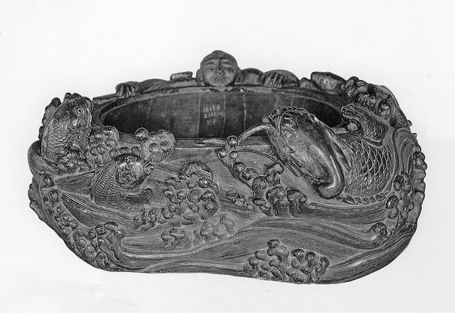 清宫为新生儿使用的洗三盆 三是为即将诞生的新生儿准备应用之物。有春绸小袄、白纺丝小衫、春绸挖单、红兜肚、潞绸被、褥等,应有尽有。