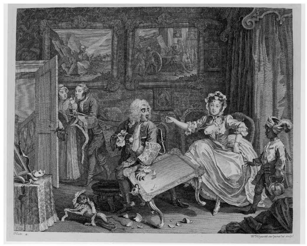 实际上正相反,正是由于这些二手、三手的复制与引用,荷加斯的画作才能得到最广泛的流传。在1723年,《一个妓女的历程》只印了1240套,只有个人订购者才可以得到它们,而其昂贵的价格(每套21先令)是普通人难以承担的。因此,其画作广泛而持久的影响应主要归功于无数的仿制、改编与引用,这些东西才分布更广、更易得。它们将原作传播至千家万户。