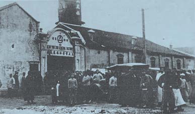 三友实业社是中国有史以来第一家大规模机器生产的纺织厂,“九一八事变”后,工人们自发组织了“抗日救国会”,天天上班前操练。看到日本僧人在厂门口挑衅,“救国会”的工人们随即走了出来,进行盘查。