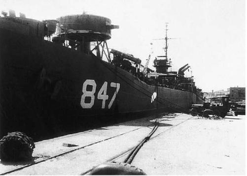 【图:一九四五年九月二十一日,847 坦克登陆舰停靠在上海黄浦江】