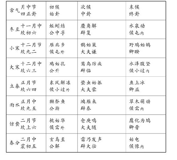 宋李溉卦气图,又以十二月主卦之爻配七十二候。盖每卦六爻,十二卦恰七十二爻也。此图朱震载入《汉上易传》。