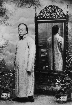 图二 1912年,一位年轻人剪辫前在照相馆的留影。