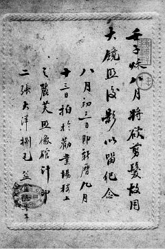 没有反清志士们断发前的铮铮誓言,也没有遗老遗少们被迫剪辫时的哀哀怨怨或决意留辫的执拗,这位年轻人只是平静地记述了拍摄照片的动机和经过,但于字里行间也对从此失去那条长辫,流露了淡淡的眷恋。这也难怪,他的爷爷、他的父亲,乃至他更老的祖辈们,都是脑后拖着一条长辫生活过来的,自打他记事起,身后的这条长辫也须臾不离地伴随着他,既是他身体的一部分,也是他生活的一部分,如今一旦失去,难免有些不习惯,乃至有些怅然。