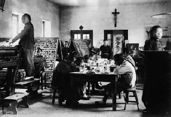 图二 20世纪初,山东烟台的一间教会印刷所。劳作其间的少年,有幸成为当地最早掌握西方印刷技术的一批中国人。
