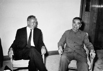 柯西金觉得与周恩来会晤已经无望,遂按原定日程飞返莫斯科。不料,途中在杜尚别停留的时候,接到了苏联高层的通知:中国方面已同意会晤,让他马上折飞北京。于是就有了这次会晤和这张照片。