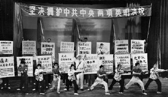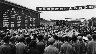 照片上显示的,举国上下一致拥护的中共中央的两个决议,其一是“决定华国锋为中共中央第一副主席”,其二是“决定撤销邓小平的党内外一切职务”。以上两个决议是在平息了“四五”事件以后一起通过的。那时人们的信念是,凡是以毛主席为首的党中央通过的决议,都要无条件地拥护,哪怕是发动“文革”,哪怕是把刘少奇永远开除出党。除了“与以毛主席为首的党中央保持一致”的信念在起作用外,人们无条件地拥护中央任何一个决议的另一个重要的原因,是消息总被严密地封锁,譬如,人们,尤其是北京以外的人们并不知道清明节那天天安门广场究竟发生了什么事情,而被剥夺了知情权的老百姓,除了“无条件拥护”以外,也实在难有别的什么选择。
