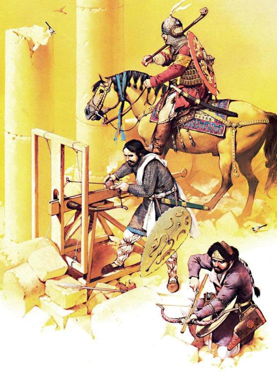 ◎ 阿尤布王朝的军队(12世纪晚期至13世纪早期)。1为萨拉丁,2为塔瓦士贵族骑兵,3为卫兵。